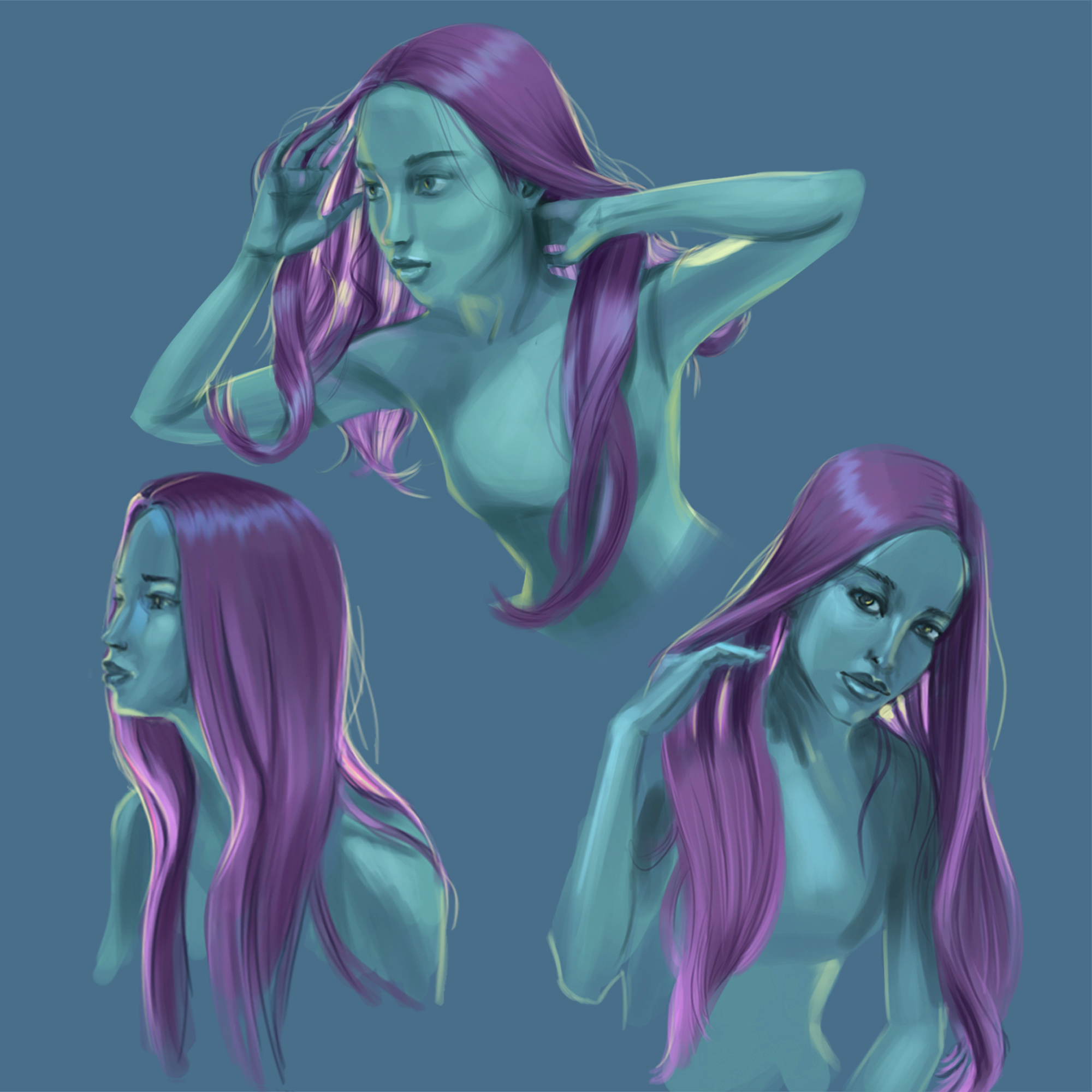 I work digitally in Photoshop and Procreate, and I’m currently learning Maya and ZBrush to expand into 3D and improve my understanding of form and volume.